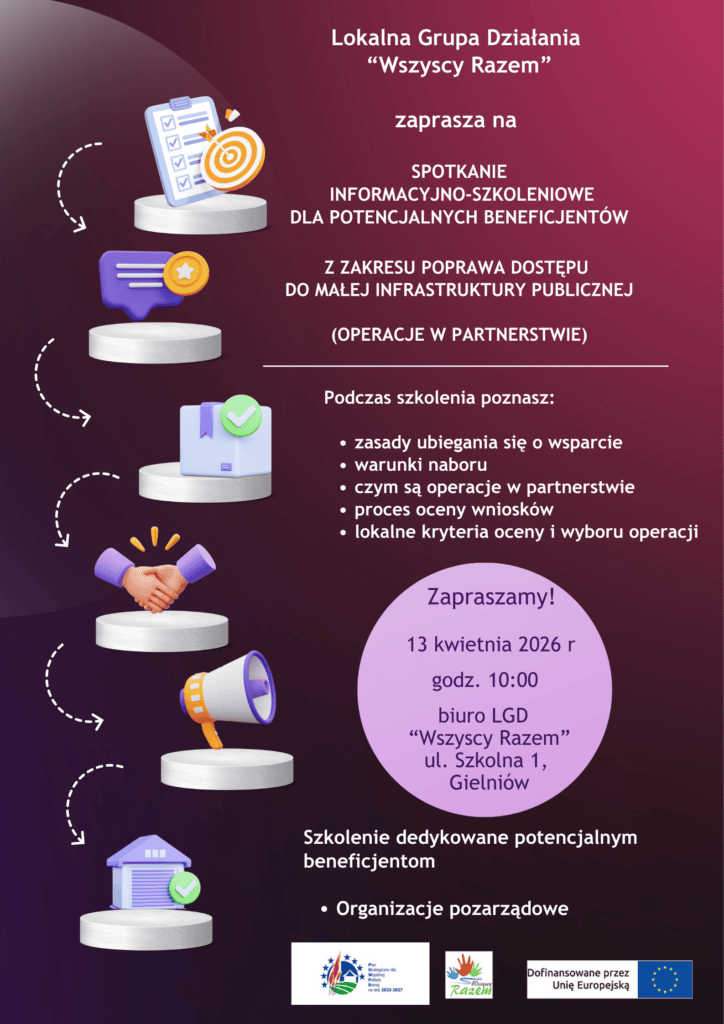 Spotkanie informacyjno-szkoleniowe dla potencjalnych beneficjentów z zakresu „Poprawa dostępu do małej infrastruktury publicznej”